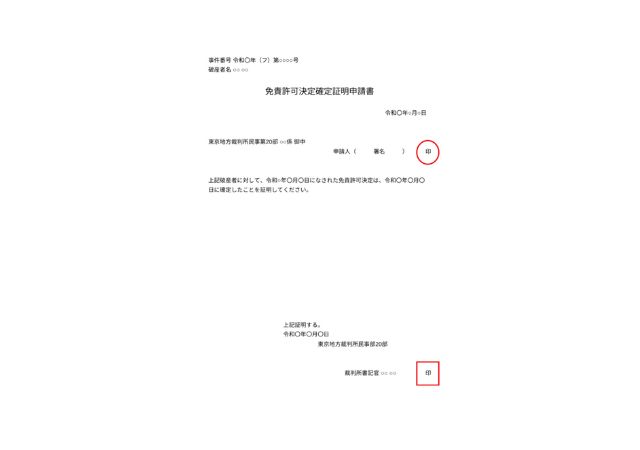 免責許可決定確定証明書は、第三者に対して免責が確定したことを証明するために用いる書類です。
