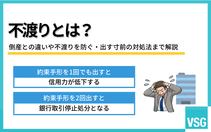 不渡りとは手形の決済ができない状態を指す言葉で、事業継続が不可能な倒産とは状況が異なります。