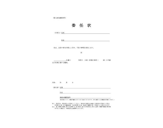 - 委任する内容:土地・家屋名寄帳の申請および受領に関する権限