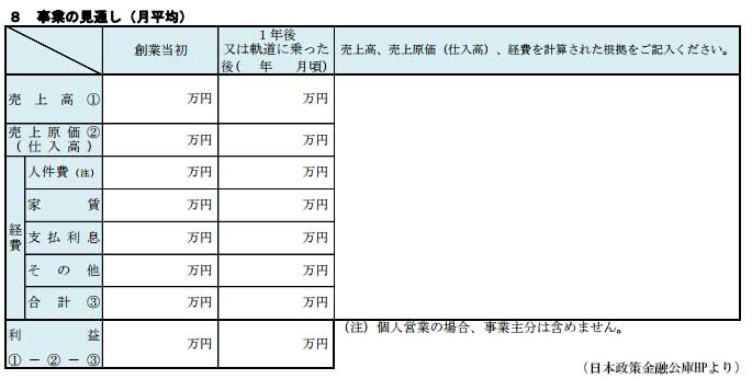 また、起業家自身の生活費が出ない計画になっていると、公庫からすると、融資を生活費に回すことを考えてしまいます。