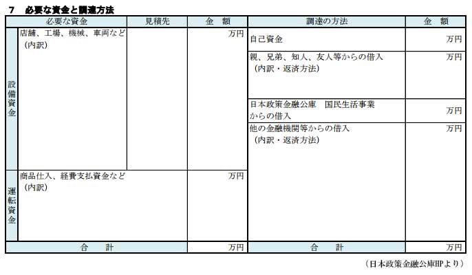 特に、「必要な資金と調達方法」と「事業の見通し」の項目は重要です。