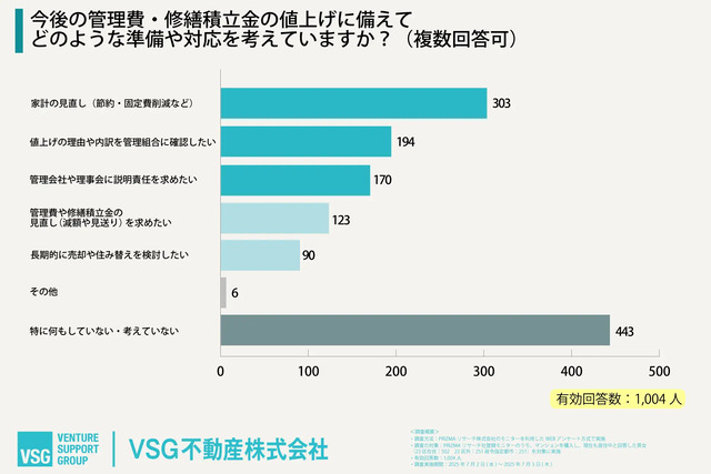 「今後の管理費・修繕積立金の値上げに備えて、どのような準備や対応を考えていますか?(複数回答可)」という質問に対して、以下の回答が得られた。
