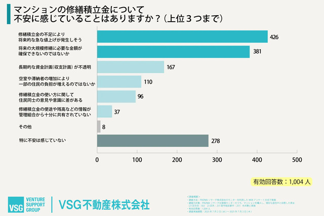 「マンションの修繕積立金について、不安に感じていることはありますか?(上位3つまで)」という質問に対して、以下の回答が得られた。