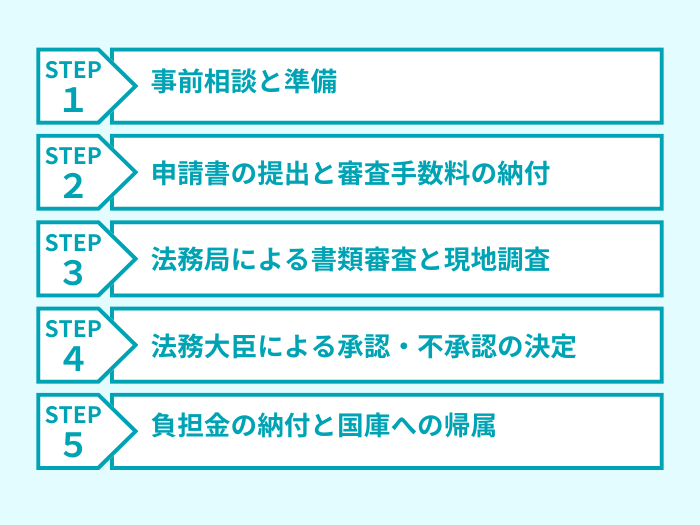書類審査と現地調査の結果に基づき、法務大臣が最終的な承認または不承認の決定を行います。