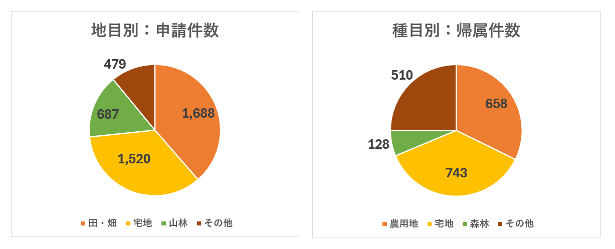 (※申請件数の「地目」と帰属件数の「種目」では、土地の分類の定義が異なります。そのため、「その他」の帰属件数が申請件数よりも増えています)