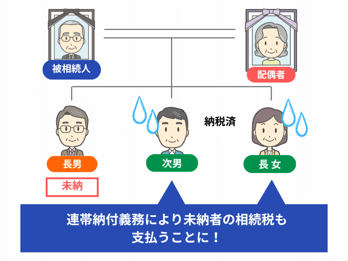 つまり、相続税の支払いは連帯責任であり、肩代わりが発生する可能性があります。