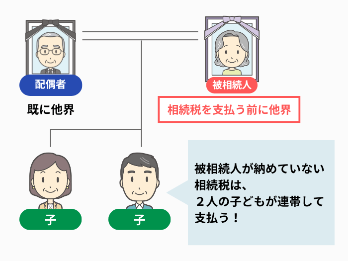 相続税を納める前にその人が亡くなり相続が発生した場合、その未納分は、新たに相続した人(次の相続人)が連帯して納付することになります。