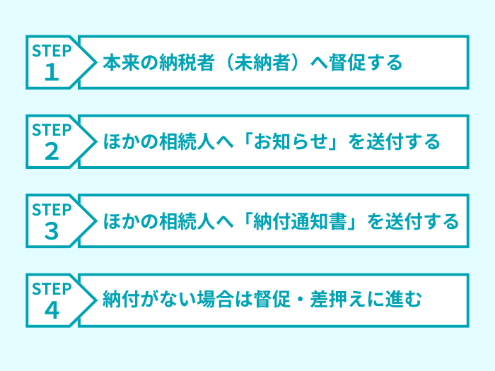 相続税の連帯納付義務は、以下のとおり段階を踏んで行われます。