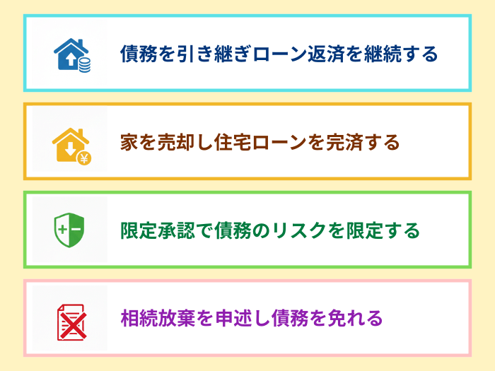 4つの対応策:「ローンを引き継ぐ」「家を売却する」「限定承認」「相続放棄」