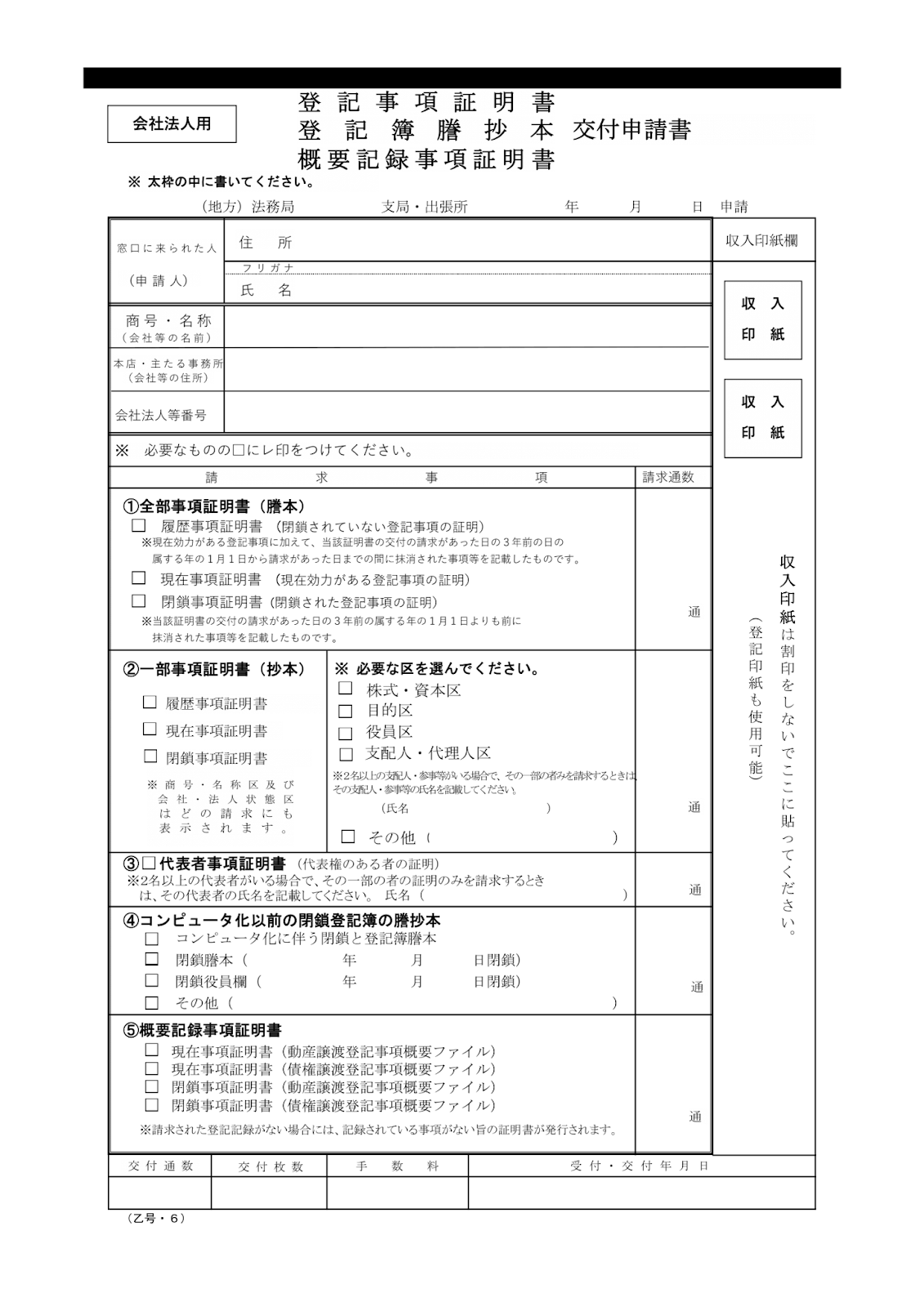 また、コンピュータ化以前の閉鎖登記簿の謄抄本を請求する場合は、その法人の本店または支店の所在地を管轄する登記所でないと取得できません。