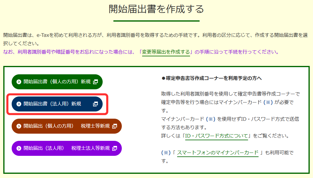 また、開始届出書はe-Taxの開始(変更等)届出書作成・提出コーナーから提出するほかに、納税地を所轄する税務署に紙面で提出することもできます。