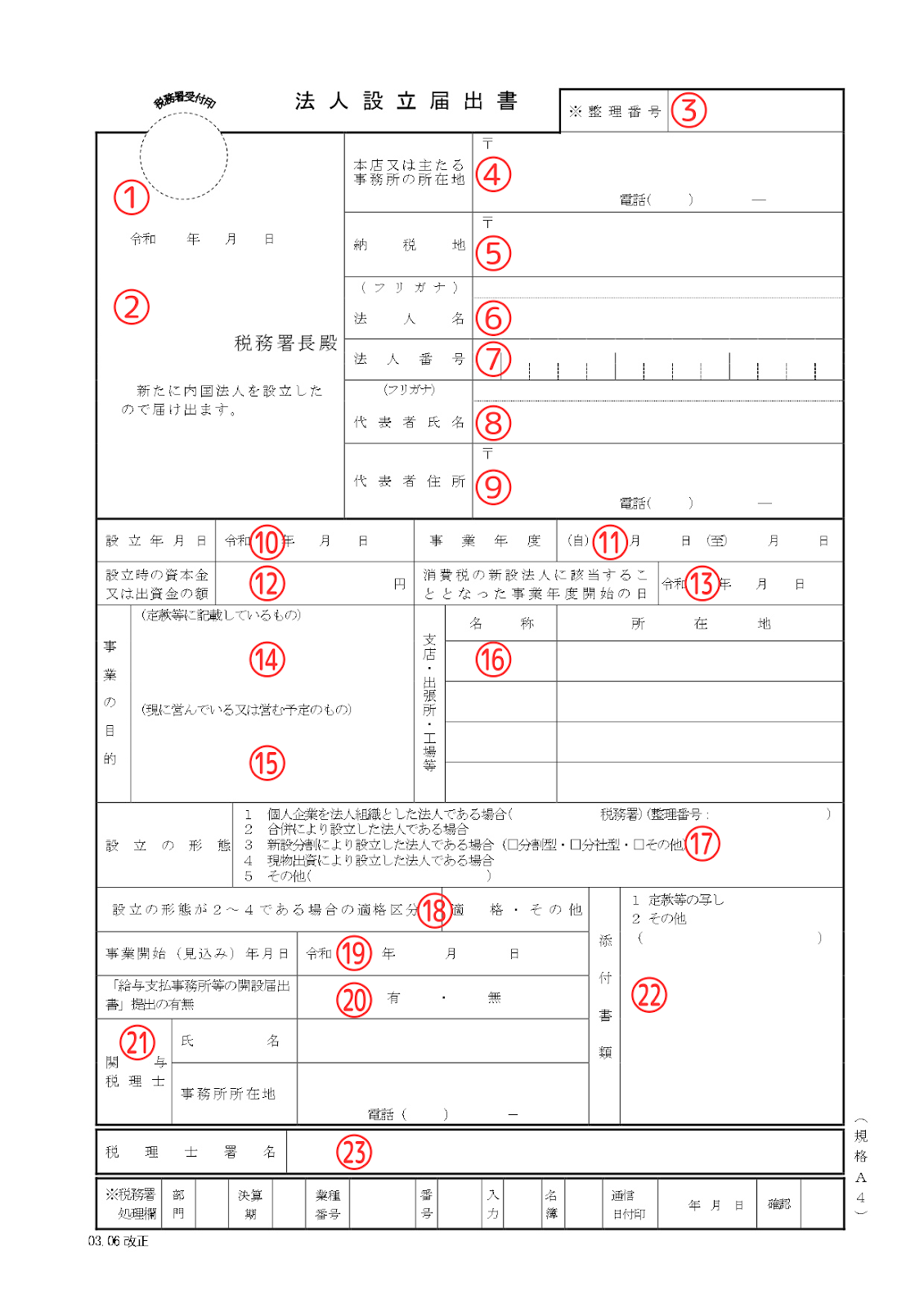 以前は法人設立届出書の控えには、税務署の収受日付印の押なつが必須でした。