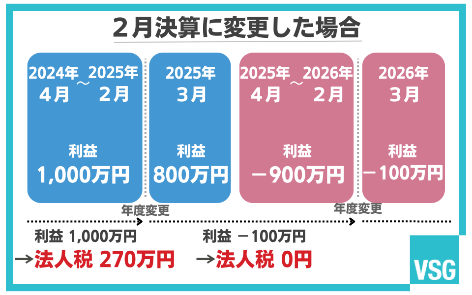 そこで、この会社の決算期を変更して2月決算にしてみましょう。