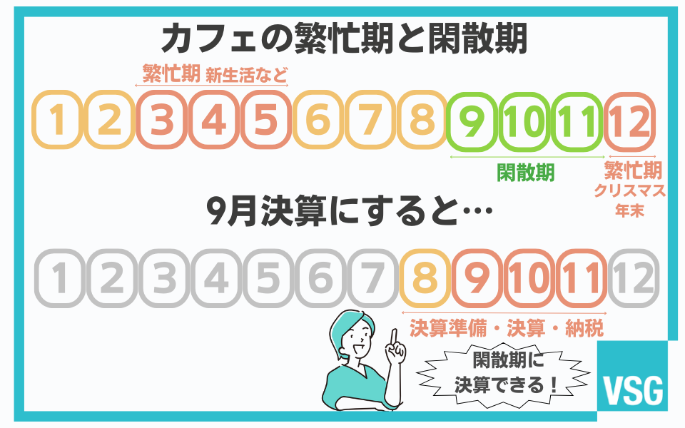 春から夏にかけての繁忙期を避け、閑散期である9~10月に決算業務を行えるので、業務にゆとりが生まれます。