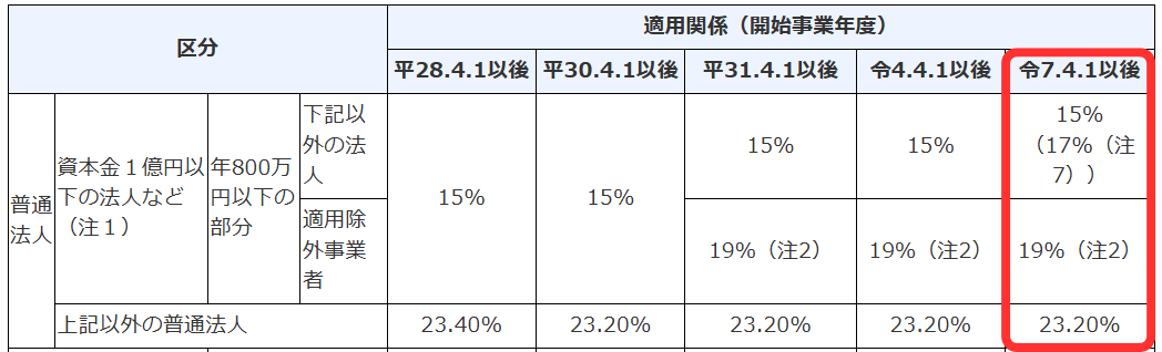 引用:No.5759 法人税の税率|国税庁 を加工して作成