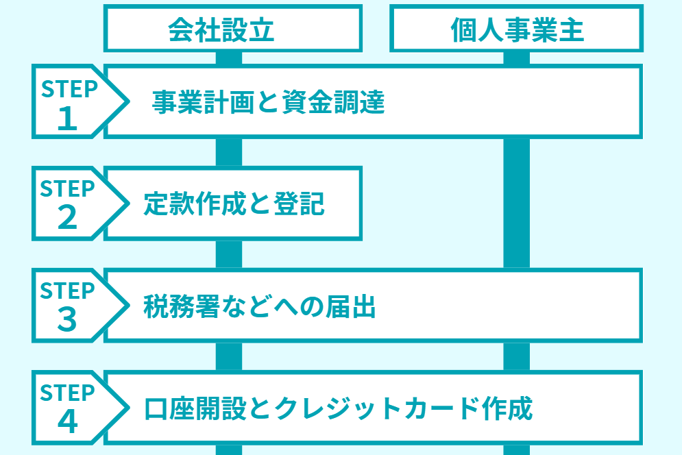 IT起業の手続きは、大きく分けて以下の4ステップです。
