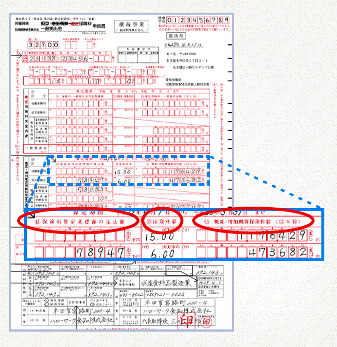 また、下記は労働保険概算保険料申告書です。