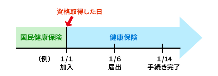 結論、国民健康保険から社会保険(健康保険)への切り替え日は、資格取得した日(加入日)となります。