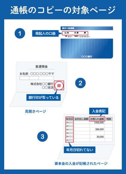 - 資本金は代表社員の個人口座に払い込む。ステップ6で提出する払込証明書に添付するため、通帳のコピーなども用意しておく