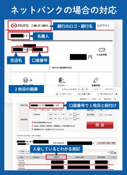 | 紙の通帳とネットバンクの画面が混在 | 添付書類は1つの口座の記録で統一する必要がある。紙の通帳のコピーとネットバンクのキャプチャー画像を混ぜて提出するのはNG |