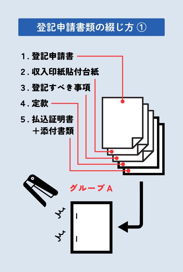 - 登記申請書類を作成して正しく綴じる