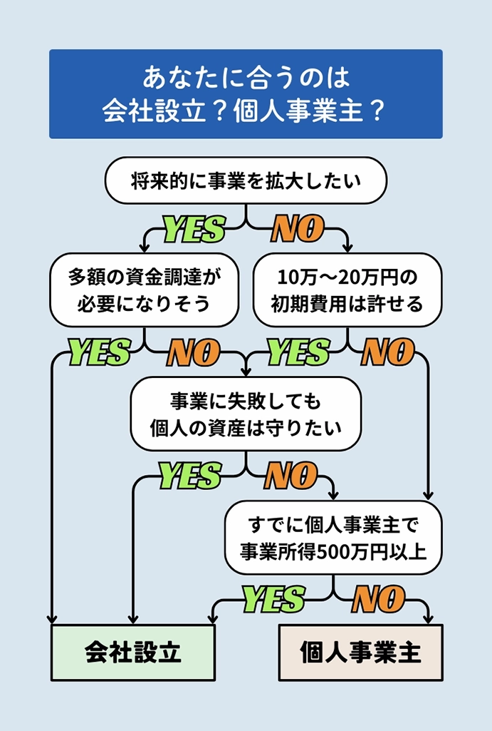 ※適性診断で「個人事業主」か「株式会社」になった人もご安心ください。本文ではそれぞれと比較したメリット・デメリットや、切り替えのタイミングなども解説します。