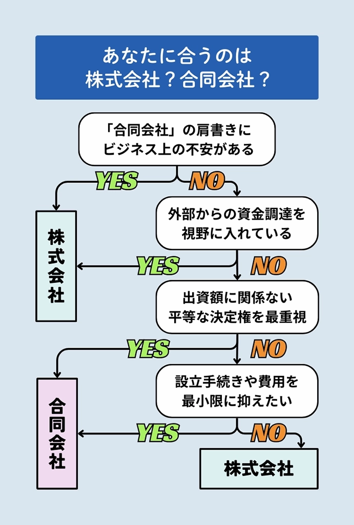 合同会社では、経営に関与しない投資家から広く資金を集めることができません。将来的に数千万円規模の外部出資を見込んでいるなら、最初から株式会社を選択すべきです。