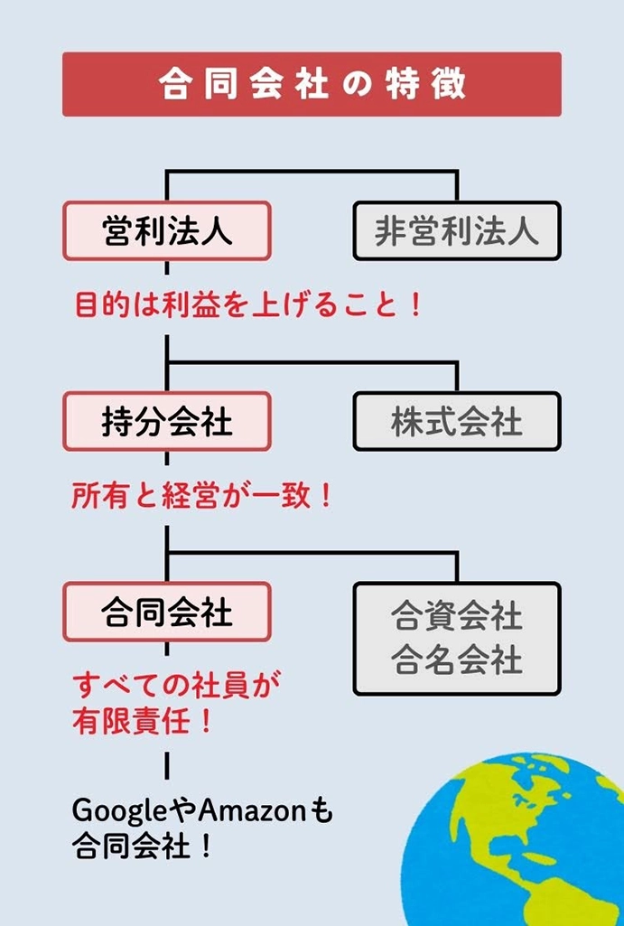 耳慣れない会社形態ですが、実は、あのGoogleやAmazonも合同会社です。それぞれグーグル合同会社、アマゾンジャパン合同会社といいます。合同会社だからといって決して怪しい会社というわけではありません。