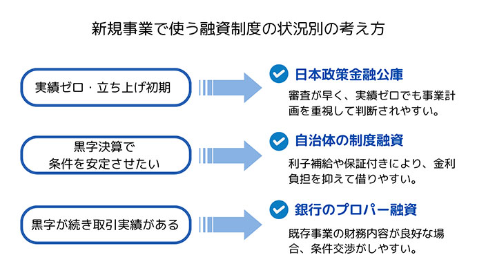 次は、既存事業の状況に応じて、どの融資制度を選ぶべきかを整理していきましょう。