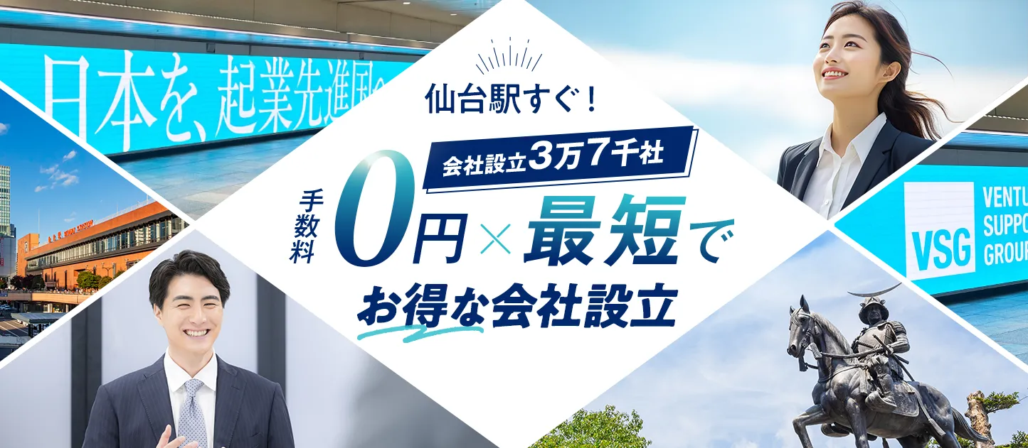 仙台で会社設立をお考えの方へ。私たちは設立実績3万7,000社超、手数料0円・最短2日設立を実現。税理士・司法書士・行政書士・弁護士・社労士がワンストップで対応し、設立後の融資や補助金、節税対策までトータルサポートします。