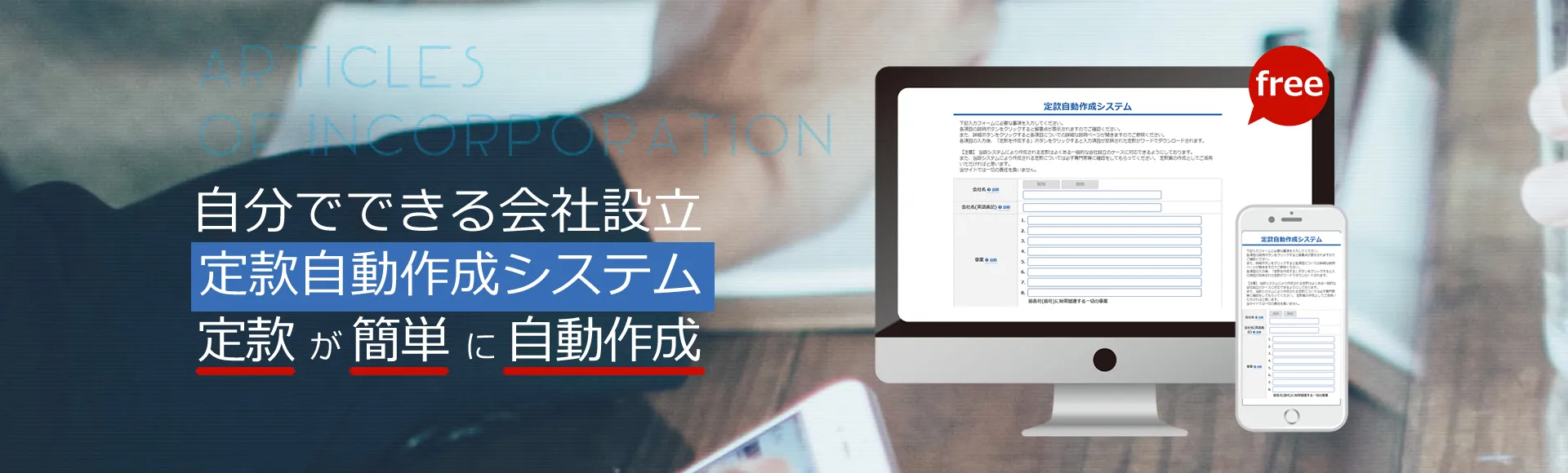 ※当システムで作成される定款については一般的な会社設立のケースに対応できるように作成されますが、作成後は専門家による確認をお勧めします。無料サービスのため当方では責任を負いかねます。
